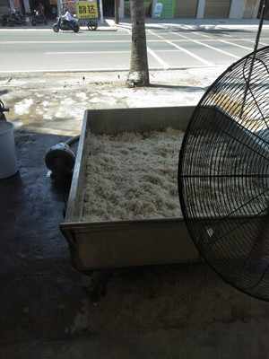 因熱水氣會上升,所以又單采用了一臺工業電風扇,來加速物料上方空氣的流動,所以效率大大提升,縮短了工時,節省時間,可比常規操作節省三分之二的耗時。